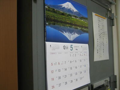 校長室には「富士山」カレンダーが飾られています。5月は「逆さ富士」今月はいいことがありそう!