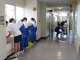 大掃除の後、環境委員さんがワックスがけをしてくれました。多くの生徒が集中して取り組んでいました。