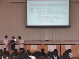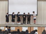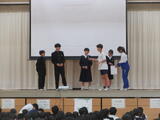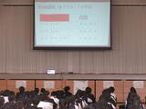 体育祭実行委員さんを中心に、体育祭の色別抽選会を行いました。まずは体育祭のガイダンス。パワーポイントでわかりやすく説明。