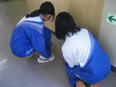 全校生徒の力を結集して、学校中がキレイになりました。普段の掃除は15分間ですが、今日は50分間(2時間目)です!廊下の隅々まで磨きました。