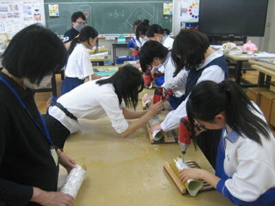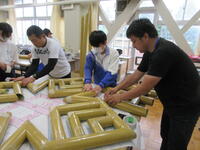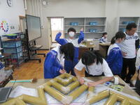 仿¥ãã竹ãããã®è£œäœéå§ïŒåæ¥ãšããããšã§ãçæ¬ããæ¥è ã®æ¹ãã¯ãŒã¯ã·ã§ãããè¡ã£ãŠãããŸãããã¿ããªçå£ã«è©±ãèŽããäœæ¥ã«å ¥ã£ãŠããŸããã